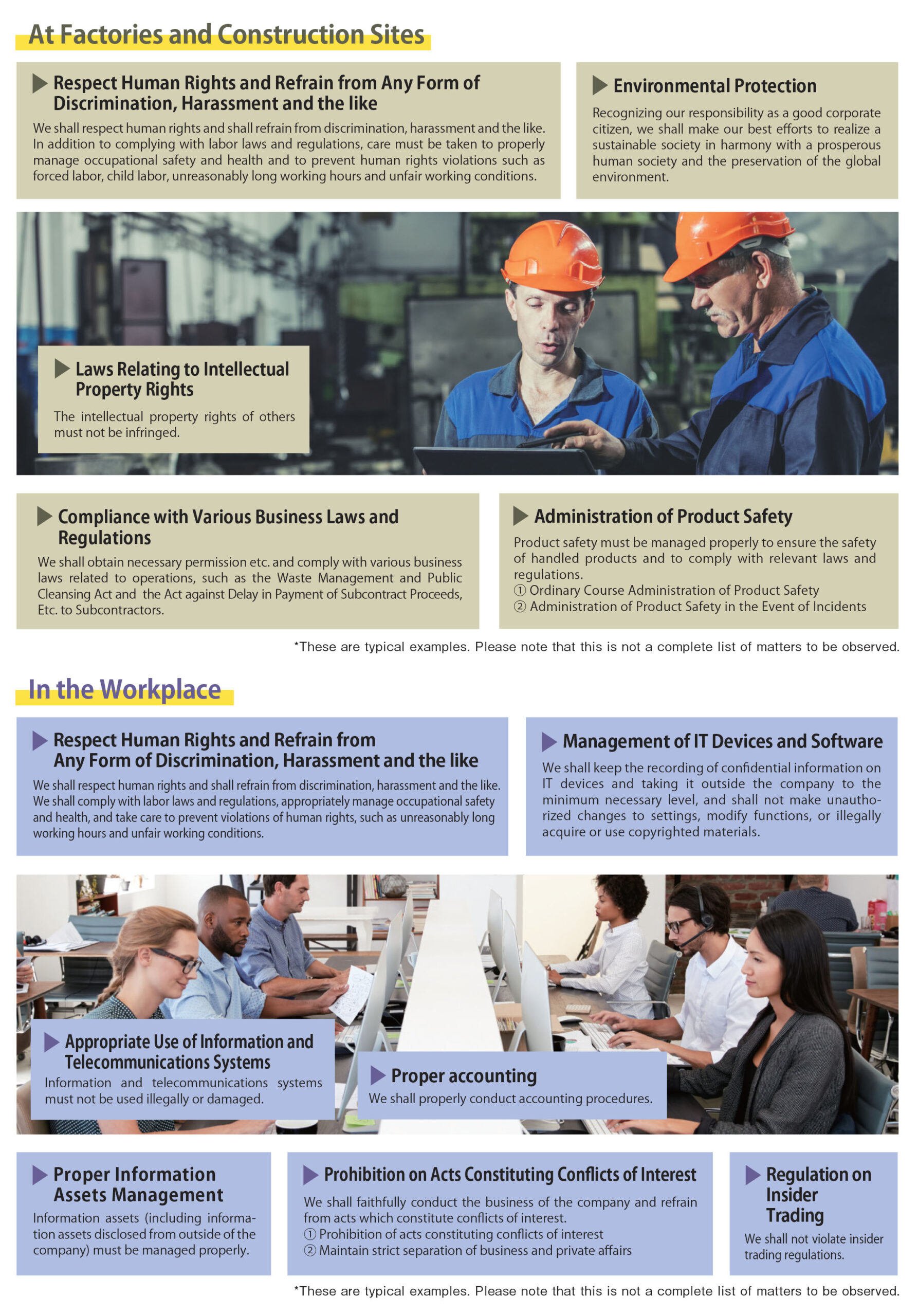 These are typical examples. Please note that these are not a complete list of matters to be